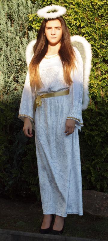 Sametový kostým anděl, velikosti S (36)obsahuje:Dlouhé sametové šaty olemované peřím, křídla, svatozář