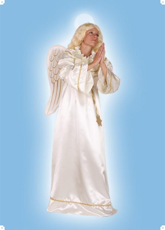 Saténový karnevalový kostým Anděl velikosti M obsahuje: šaty, svatozář, křídla