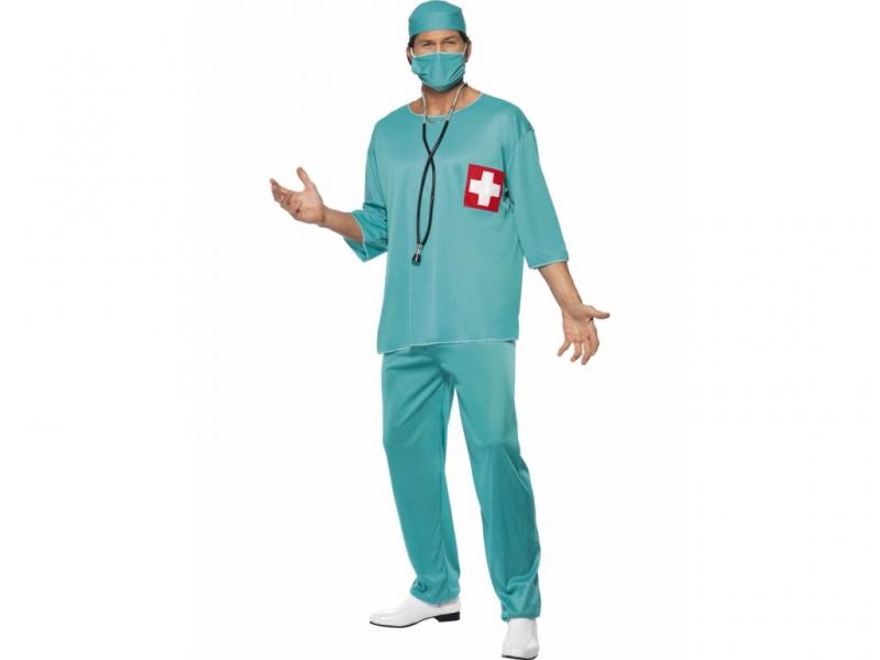 Karnevalový kostým Chirurg velikosti M obsahuje: Kalhoty, vrchní díl, rouška, čepice.
